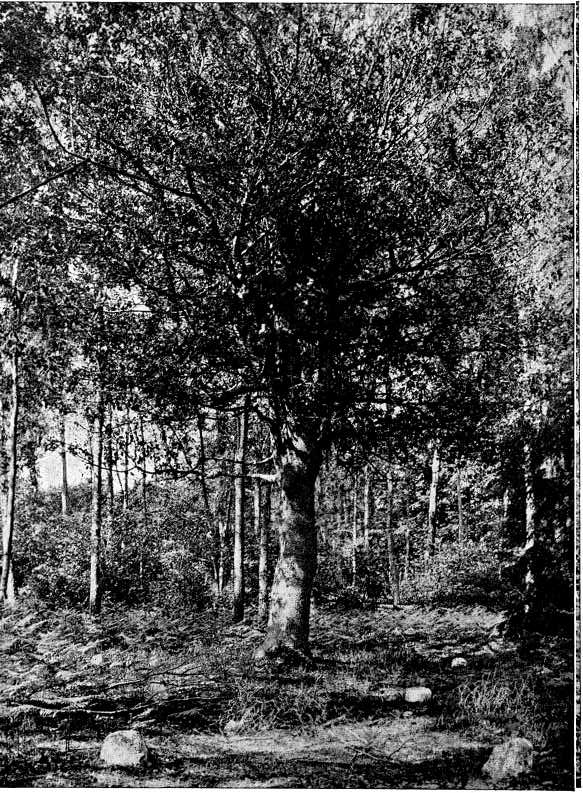 Træet er vidunderlig skønt. Det staar paa en aaben, solbelyst Plads mellem nogle unge, slanke Birke, der løfter sig over en hel Skov af Ørnebregner. Dets stenhaarde Stamme er glat som Rav og uden en Lyde; først 3 m fra Jorden deler den sig i 4 Dele, hvorfra der udgaar et Mysterium af Grene med tæt, friskt Løv, naturligvis med helrandede Blade. Desværre var jeg ude af Stand til med Sikkerhed at maale dets Højde, men uden Tvivl naar det op imod 11 Meter. — Stammens Bark er kølig, glat og haard som Marmor, og det ældgamle Træ staar endnu med et Væld af friske Blomster mellem det dybgrønne Løv.