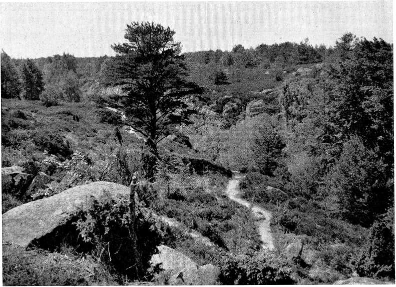 Fra Rispebjerg synker Landet hurtigt mod Syd og Sydøst og bliver bestandigt fattigere ud mod Øens sydligste Spids. Mange Steder ses det bare Sand mellem Agrenes Straa, men besynderligt er det at sammenligne de stadigt frodige Trævækster med den elendige Sæd. Sjældent har jeg set noget Landskab, hvor Træerne spiller en saa stor Rolle som i det bornholmske, selv her i disse fattige Egne. Mægtige Alléer af skønne, slanke Popler følger Vejene, og overalt ses frodige Krat og Smaalunde.