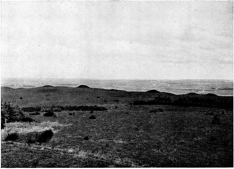 Del af Højgruppen paa Vester-Vandet Mark. Her er ialt ti Høje.