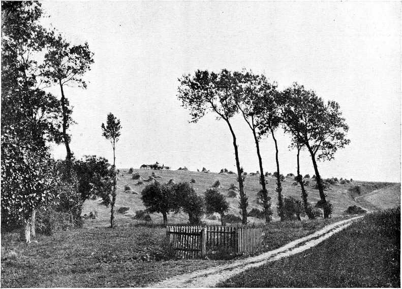 Den ejendommelige Maade, hvorpaa de enkelte, slanke Popler her rager op over de lave Hegn og de smaa Trægrupper i det vide Landskab, minder mig i høj Grad om Landskabsindtryk fra Nordøstfrankrig. — Men her bølger Havet om mig til alle Sider, Luften er salt og bærer Dufte af Tang fra den nære Strand, Maagernes Skrig og de store Poplers stærke Susen siger mig, at jeg er hjemme.