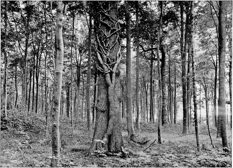 Eg i Sparretorn Skov, omklamret af en vældig Vedbend.