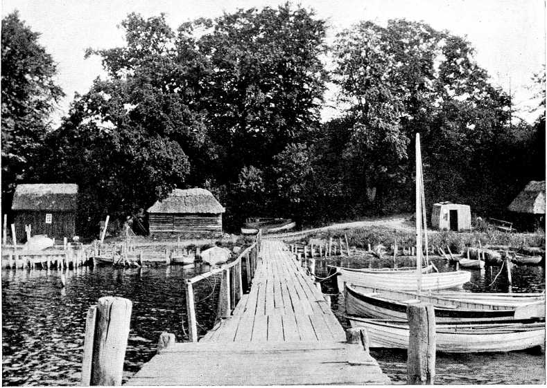 En halv Snes Fiskerbaade ligger i Stranden og rykker i deres Fortøjninger, Søernes Smasken mod deres klinkbyggede Sider er den eneste Lyd, jeg hører, foruden Vindens Susen i Træerne.